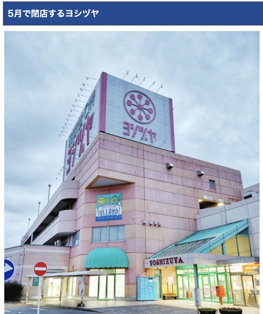 子供の頃から、母親に連れられて買い物に行っていた、ヨシヅヤ大口店が閉店との情報。