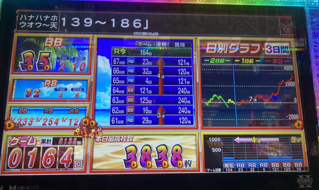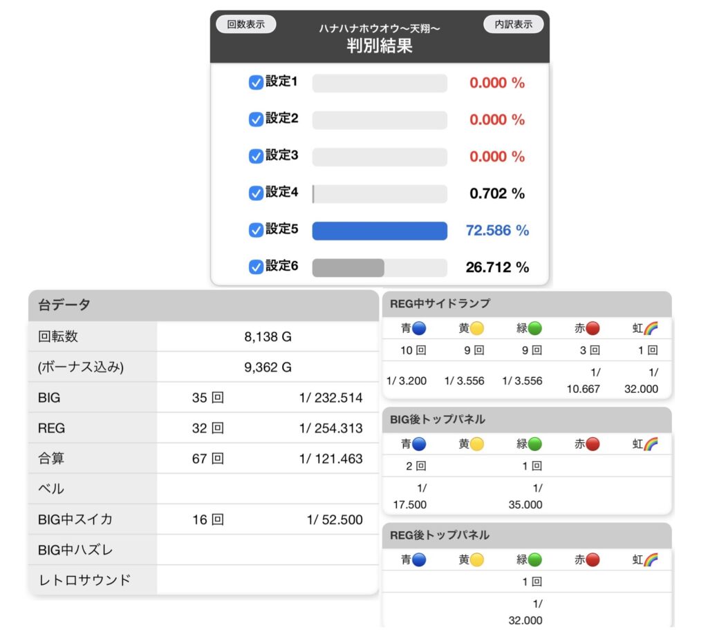 後半に伸びてくれたので良かったですが、設定5ならもっとビッグに寄ってほしかったなぁ…。